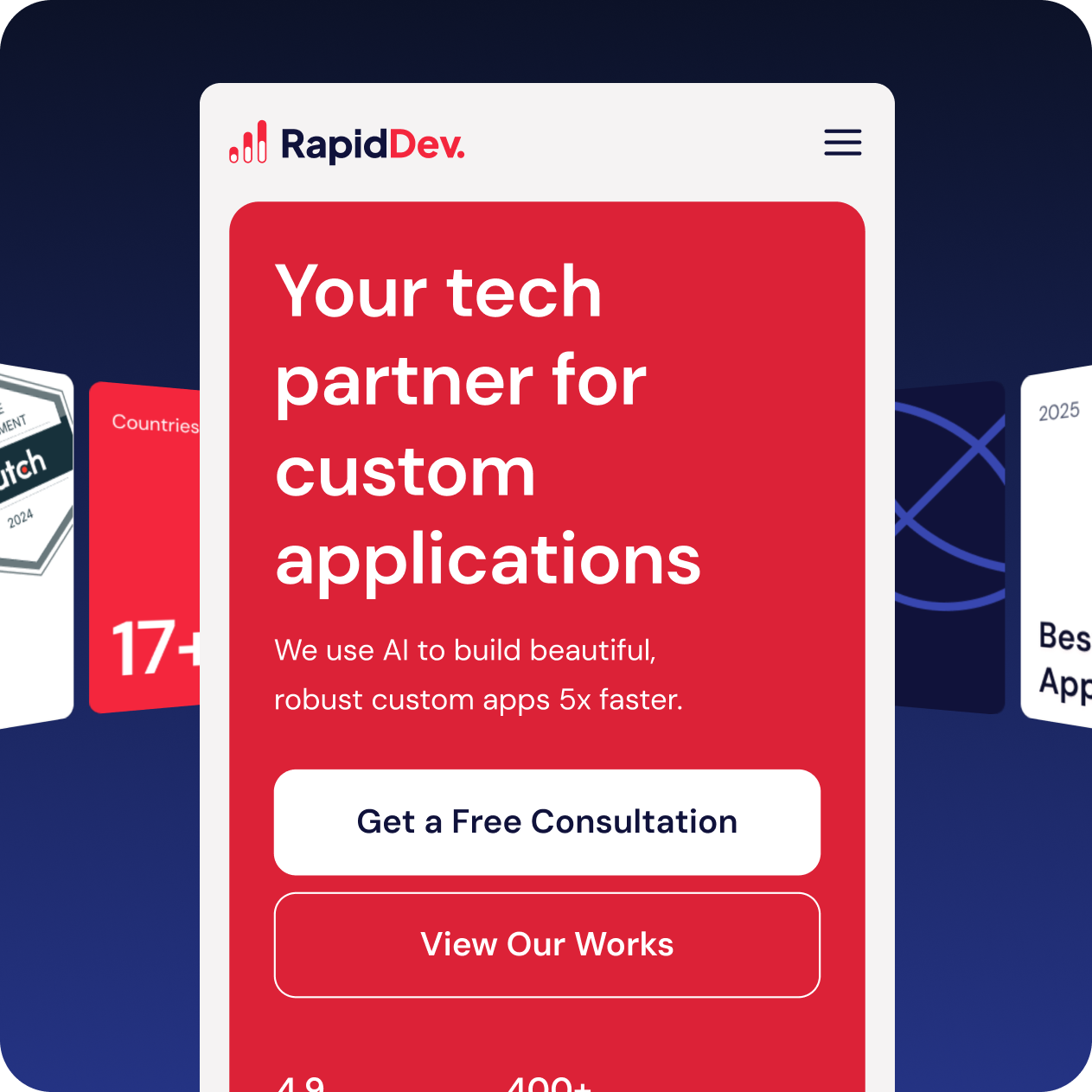 Visit RapidDevRapidDev came to Merge with the task of redesigning the website to sell better. The existing site felt outdated, navigation was complicated, and visuals were inconsistent. The team wanted to refresh their look into something cleaner and modern while keeping their core red color. They also wanted to clarify their offerings and support two buying paths: project services and templates.