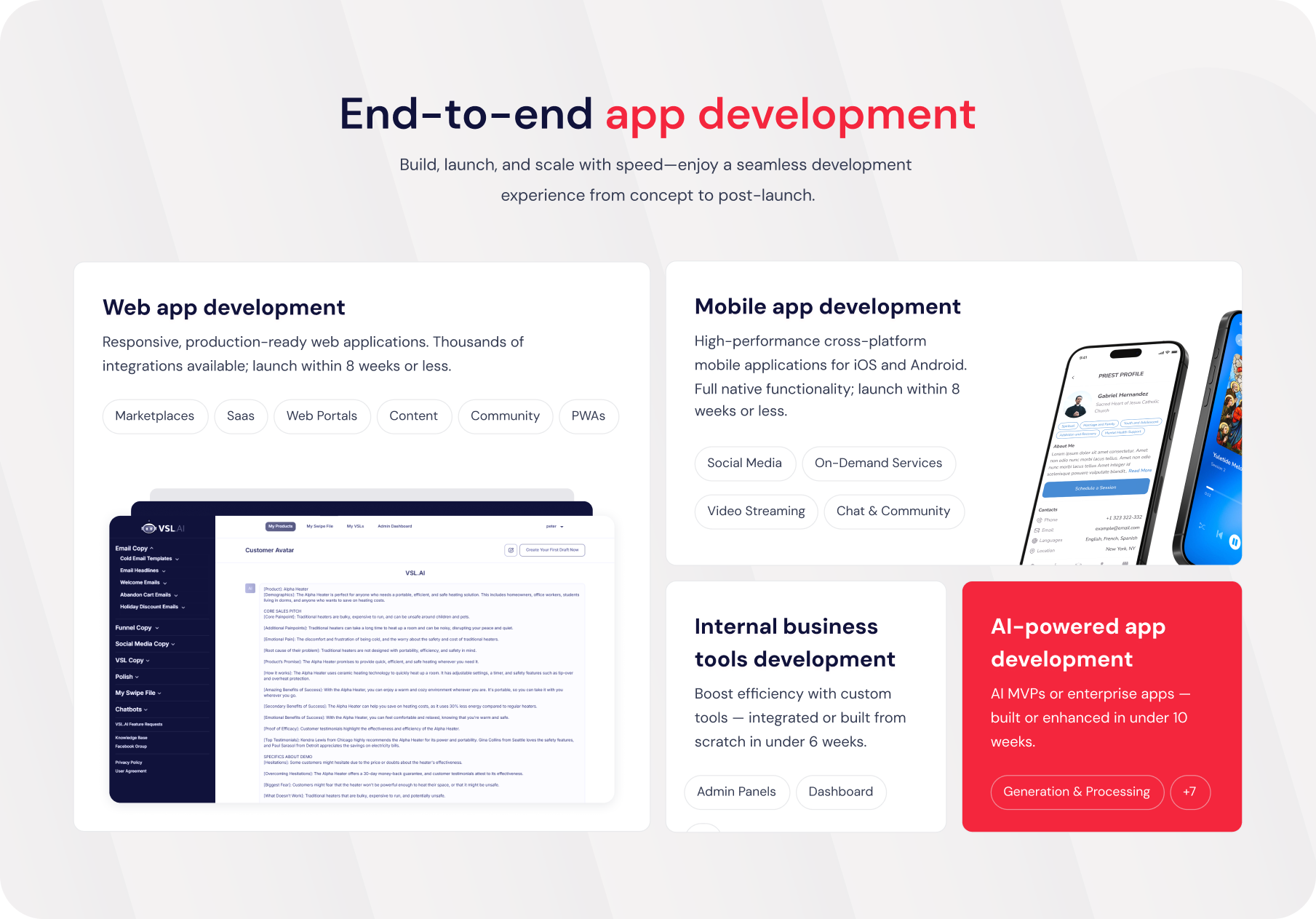 RapidDev asked for a website that sells better, fixes confusing navigation, and refreshes the style without losing the brand’s red. We framed success around clearer paths for services and templates, stronger differentiation, and assets their team could reuse.