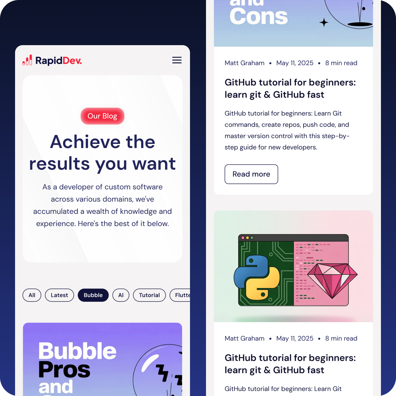 RapidDev sells two things on one website: project delivery and ready‑made templates. The old structure made that split hard to see. We approached the redesign by framing every page around these two routes.